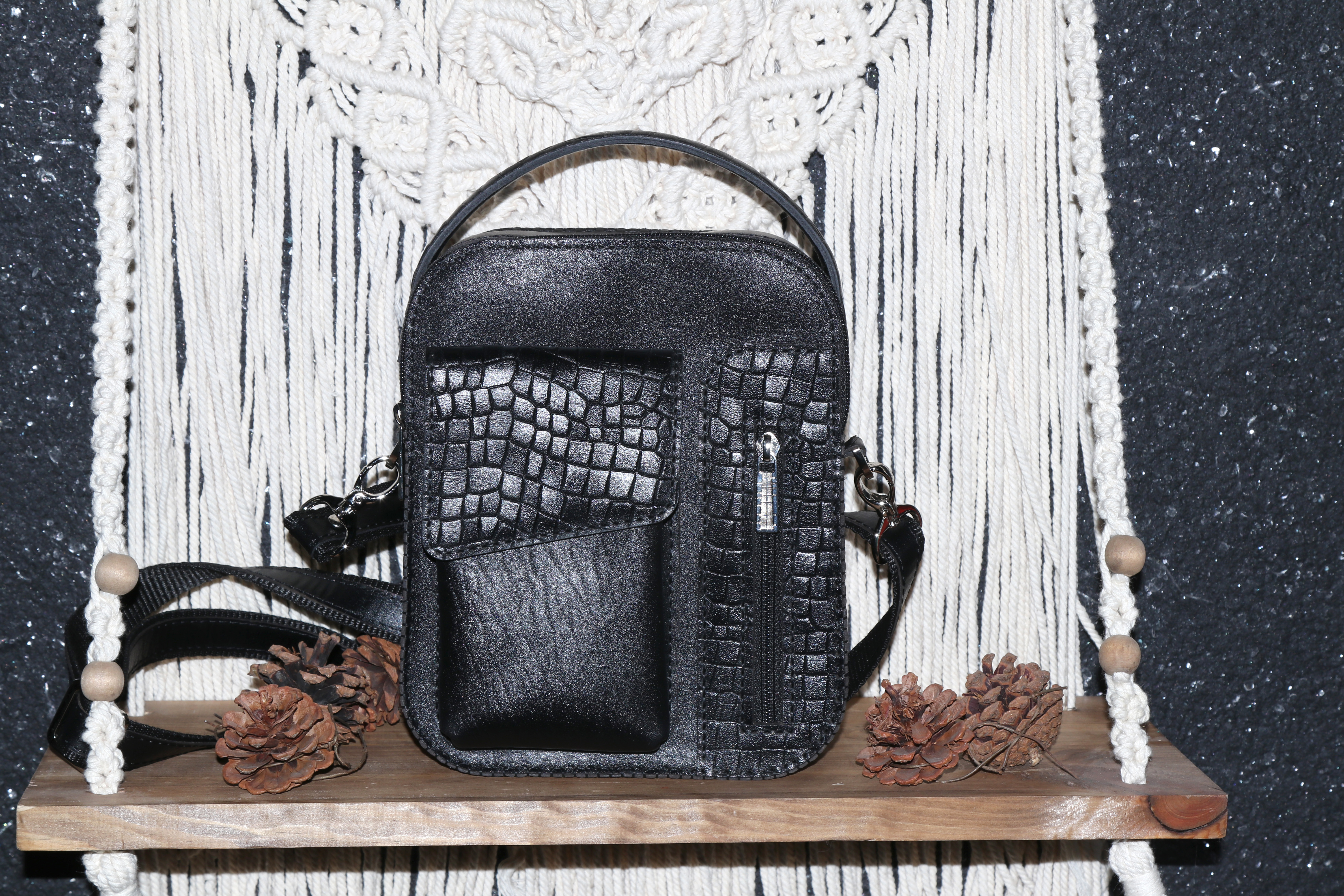 شوزبگ چرم طبیعی با یراق خارجی دستدوز